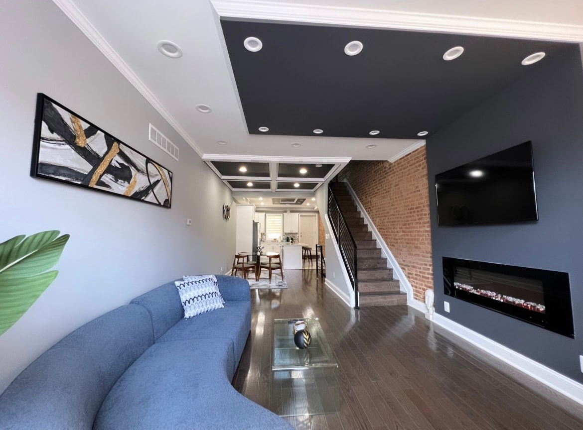 RowEnd, ideal para familias, con estacionamiento La mezcla perfecta de encanto urbano y relajación frente al mar, ideal tanto para el ocio como para los negocios. Dormitorio principal con interior de ladrillo original, cama tamaño queen y zona de trabajo. 2 dormitorios con sofá cama extraíble, chimenea, TV de 85 pulgadas y sofá cama. Ducha con rociador, combinación de lavadora y secadora, wifi, televisores inteligentes. Salga y sumérjase en la vibrante energía de Fells Point, conocida por sus calles empedradas, arquitectura histórica, boutiques locales, bares y restaurantes animados, todo está a poca distancia a pie a 1 cuadra del agua.
