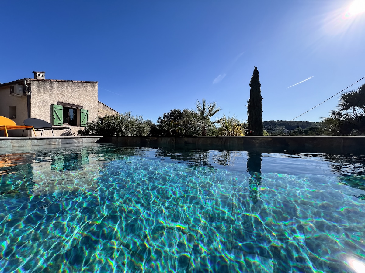 Relájese en este alojamiento único y tranquilo. Loft muy bien equipado al estilo provenzal de 40 m2 con una gran terraza de 50 m2 y un jardín privado con una magnífica vista de la piscina y el valle. En una gran propiedad arbolada de 7000 m2 tranquila. posibilidad de alquilar un segundo apartamento conjuntamente. Estacionamiento en el lugar.