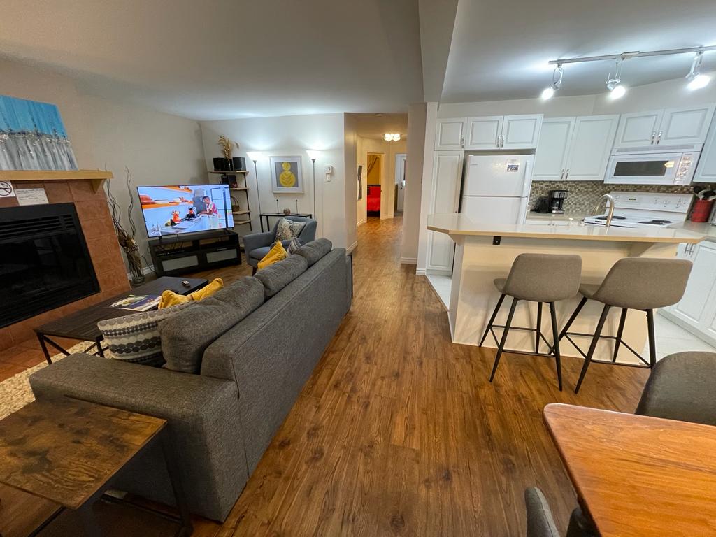 Tremblant Escape. Apartamento de 2 dormitorios ubicado a pocos pasos del pueblo principal. Tendrás acceso a 2 piscinas (en verano) y a 2 jacuzzis (toda la temporada). A poca distancia a pie (15 minutos) o servicio de traslado gratuito a la base del pueblo. Ubicado cerca de tiendas y restaurantes, pero enclavado en la naturaleza. Fácil acceso a actividades como senderismo, ciclismo, rutas de senderismo y esquí. Totalmente equipado con lavadora/secadora, wifi, chimenea de leña y cocina completa. Ideal para familias y estrictamente para no fumadores. No se admiten mascotas.