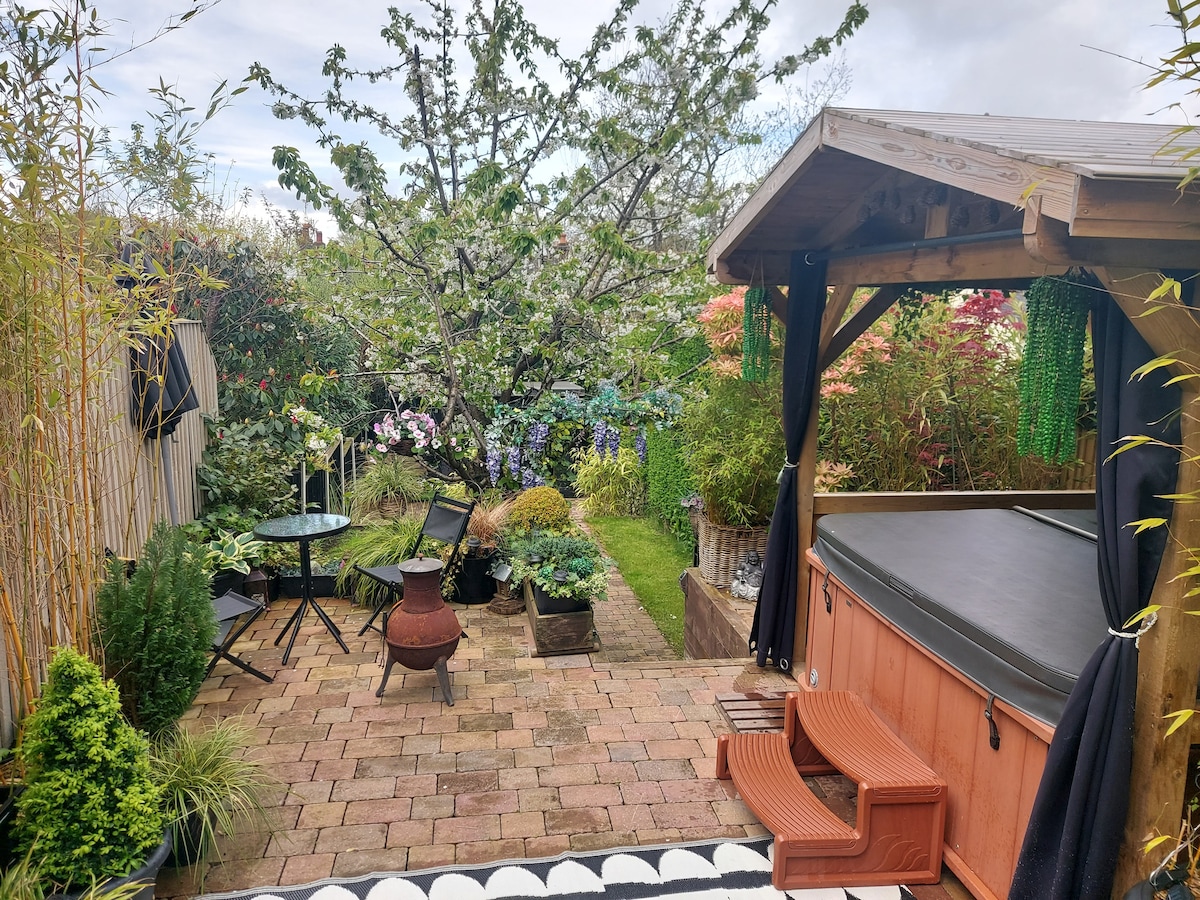 Preciosa casa de campo de un dormitorio adecuada para una persona sola o una pareja, también aceptaré a tu perro (el jardín es seguro). Es de llegada y salida autónoma. Estás a solo 2 minutos a pie del centro del pueblo, 4 pubs que admiten perros, una pequeña casa de cerveza y una galardonada tienda de patatas fritas. Bañera de hidromasaje americana grande, privada y cerrada de estilo antiguo que se puede utilizar durante todo el año.