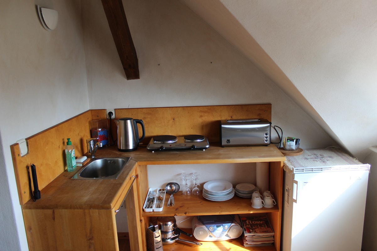 This stylish 46 sqm apartment in a converted stable loft with outdoor seating is perfect for people who love the village atmosphere. Guest Access: The gallery is fully enclosed with a railing. Other Important Information Pets allowed upon request. The immediate surroundings are only partially suitable for cycling tours. The famous ´Fläming Skate´ is by car in approximately 20 min. reachable.