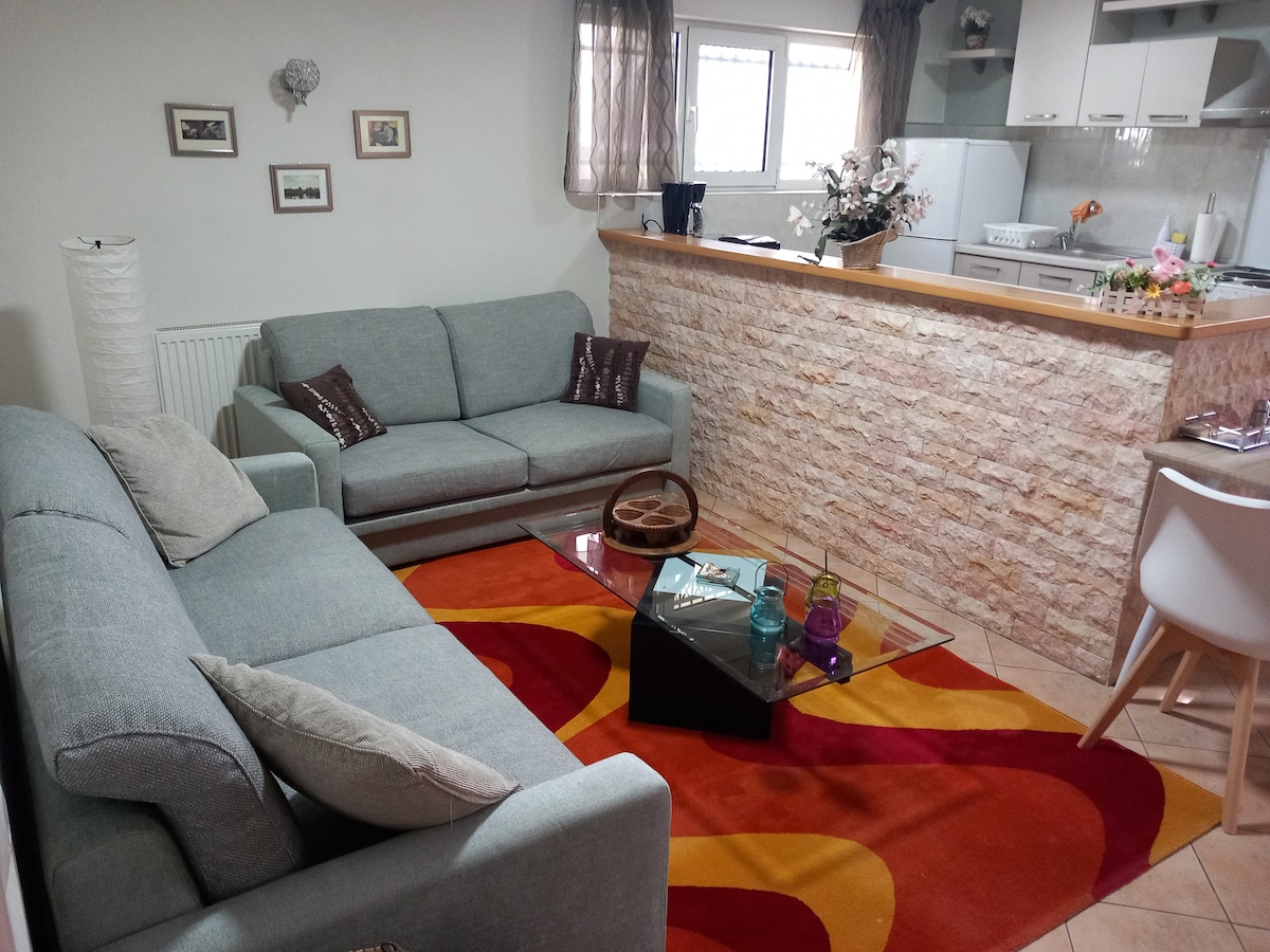 Bienvenidos a nuestra casa. Una planta entera, en la planta baja de una casa doble, recientemente reformada, a su disposición para usted y su familia. Nuestra familia estará cerca de todo lo que necesite en este espacio situado en el centro de la ciudad de Trikala. La calefacción es de gas y el aire acondicionado cuenta con 3 unidades de aire acondicionado. Dos camas en los dormitorios, así como dos cómodos sofás en el salón que se convierten en camas con capacidad para 4 adultos y 2 niños.