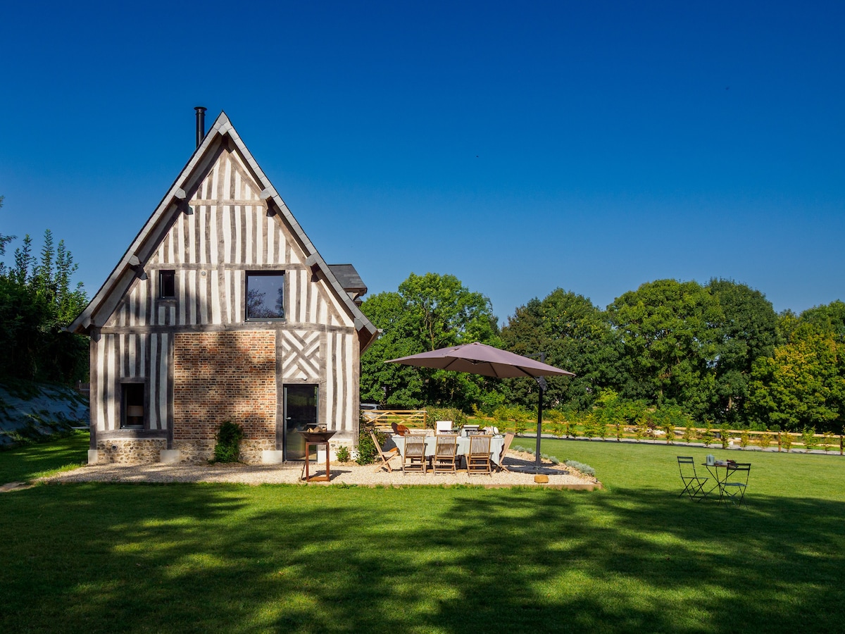 Encantadora casa de campo con techo de paja y entramado de madera, enclavada en un valle, en un entorno tranquilo y relajante que mezcla bosque, estanque y río. En una parcela de 1600 m2, la casa está bordeada por un pequeño río y un estanque seguro. Fácil acceso (a menos de 5 km de la autopista A13), permite disfrutar tanto de los encantos de la campiña normanda como de las playas y pueblos típicos de la región. Este alojamiento tranquilo ofrece una estancia relajante al sonido del canto de los pájaros, para toda la familia.
