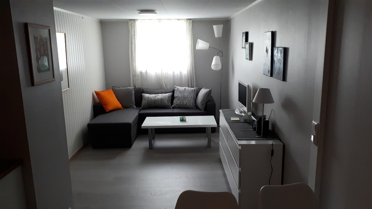 Alójate en un departamento moderno, recién renovado y completamente amueblado, en una casa privada a solo 350 metros de Storgata. Disfruta de una entrada privada, una cocina totalmente equipada, una sala de estar luminosa y acogedora, toallas y sábanas limpias. El departamento es parte de una casa privada con algunas renovaciones en curso, pero tu espacio interior está completamente terminado y es completamente nuevo. Con cafés, restaurantes, tiendas, el puerto y transporte cerca, es una base ideal para explorar Tromsø, las auroras boreales y los lugares de interés de la ciudad.