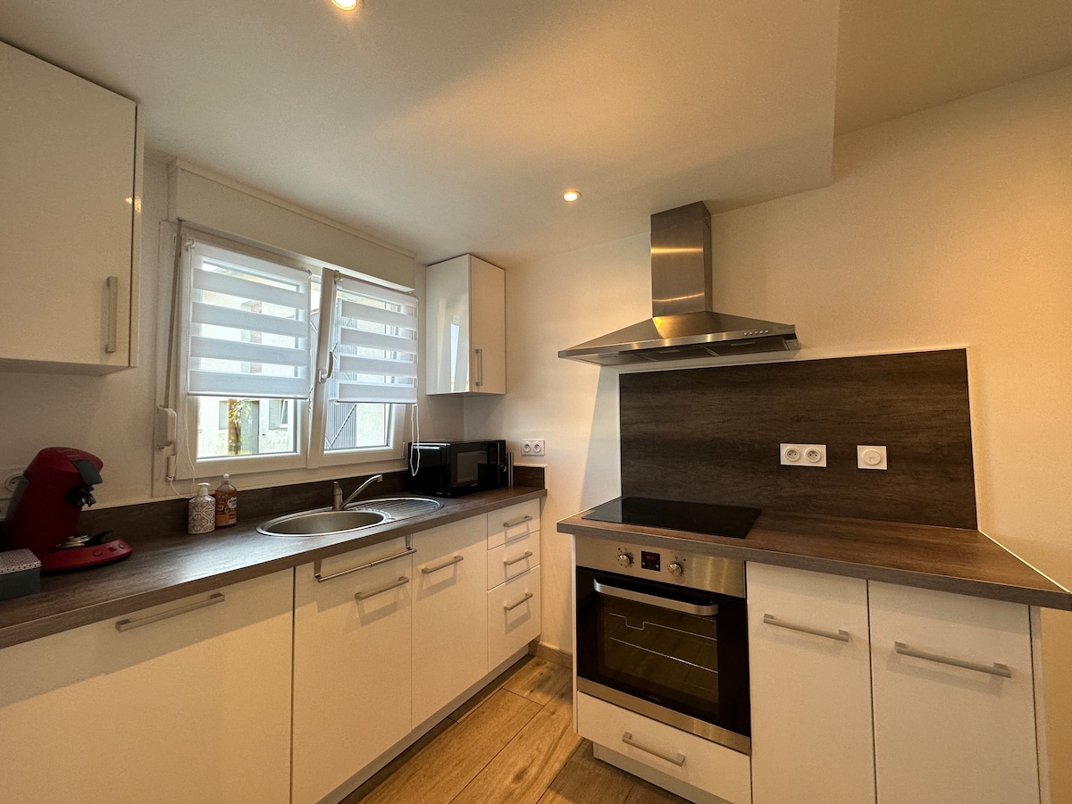 Welcome to L’Émeraude Discover our 3-star ⭑⭑⭑ studio, designed to offer a comfortable stay, whether for a business trip or a short getaway in Metz. The studio includes a fully equipped kitchen, a comfortable sleeping area, and laundry facilities. 🚗 Free private outdoor parking (not secured). Located in a residential neighborhood: 📍 3.8 km from Metz city center 📍 1.8 km from the train station and the Centre Pompidou ⬇️