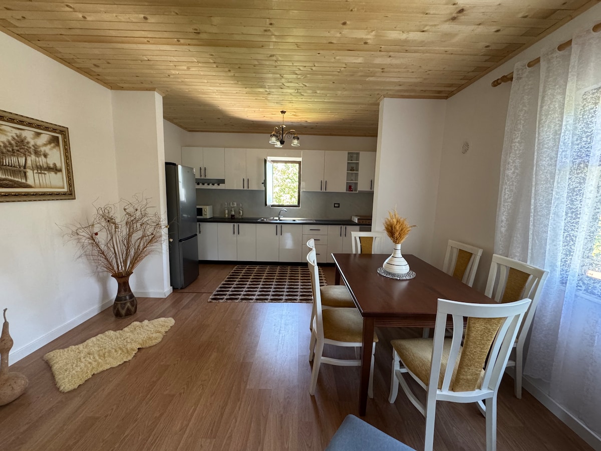 ¡Bienvenido a Tropoja! Nuestra casa ofrece comodidad y tranquilidad en medio de la maravillosa naturaleza de los Alpes albaneses. El alojamiento cuenta con: •2 dormitorios, salón espacioso, cocina completa, baños y pasillo• • Capacidad para 6-8 personas • Impresionantes vistas a la montaña, mientras fluye el río Valbonne • Wifi gratuito, aire acondicionado, patio grande y aparcamiento para 5-6 coches • Cocina donde puedes cocinar tu propia comida Es el lugar ideal para descansar en familia o en compañía.