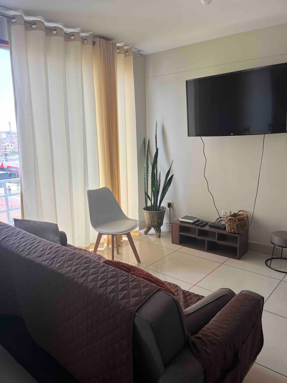 Bienvenidos a nuestro departamento con una hermosa vista de los atardeceres trujillanos. Disfruta la ciudad como un local desde este departamento céntrico y bien conectado. Con una decoración moderna y un espacio muy cómodo, es el lugar ideal para explorar lo mejor de Trujillo. Restaurantes, museos y transporte público a solo unos minutos. Estamos ubicados en taxi a 5 minutos del centro de Trujillo, 20 minutos a Huanchaco y al aeropuerto. Estamos en el piso 11 y se cuenta con ascensor.