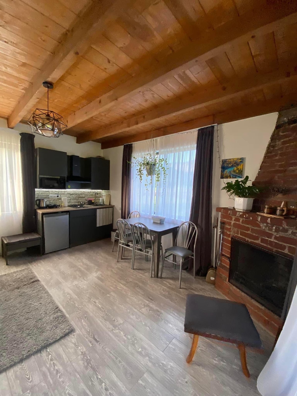 Спокойное жилье для расслабленного семейногo отдыха. Водворе три домика из брюса, большой общий басеин,зона барбекю, в каждом домике, ванната комната, кухня аборудована всеми нужными вещами, две спалльни, wi - Fi. Все для вашего незабываемого отдыха.