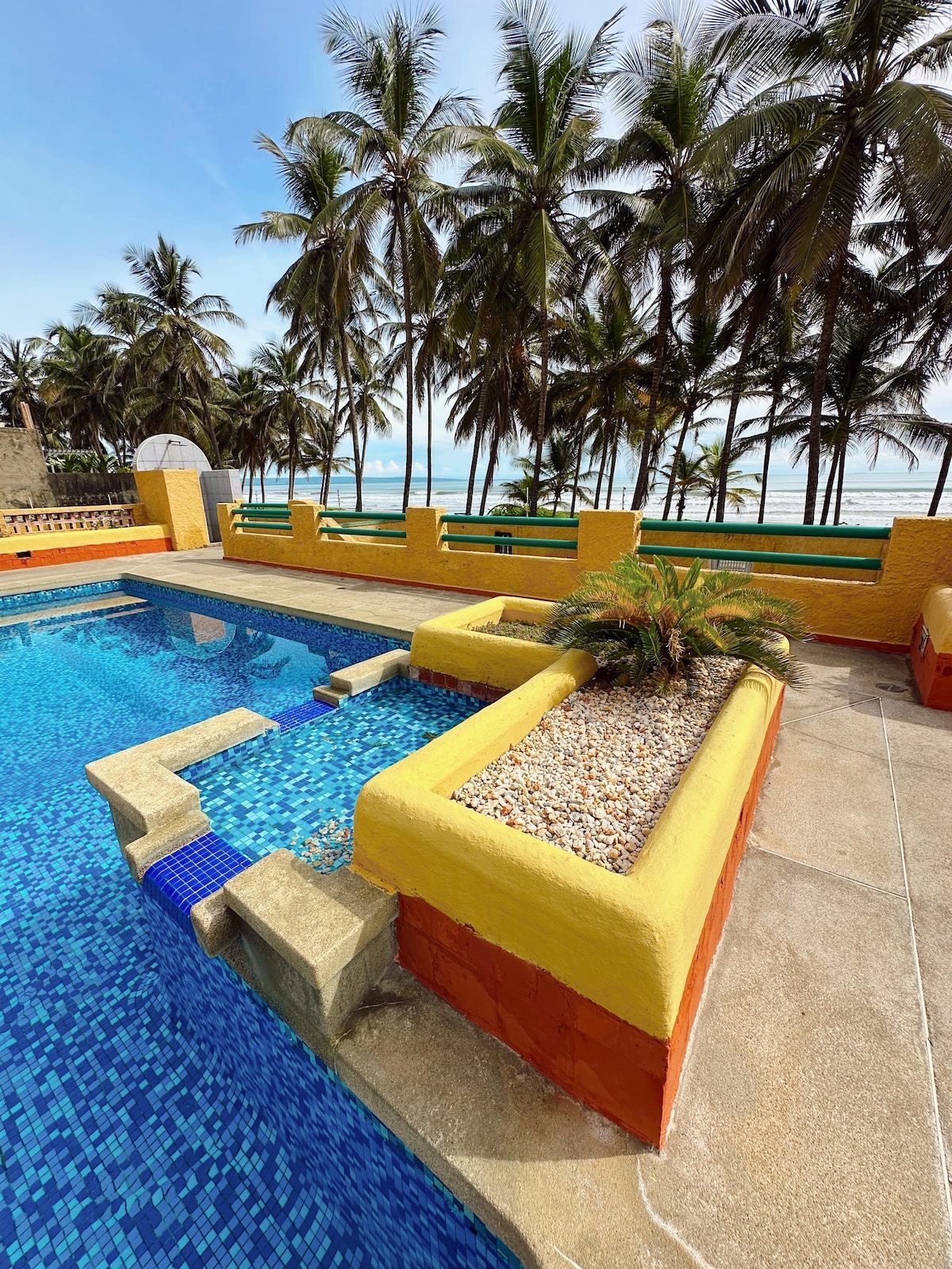 Apartamento en Conjunto Cocotero Mar II Capacidad: 6 personas (1 cama matrimonial + 4 sofá camas). Cuenta con 2 baños, cocina equipada (nevera, microondas, horno, licuadora, cafetera, etc.), aire acondicionado central, WiFi, 2 TVs con Netflix y Alexa. Pozo de agua y calentador de agua eléctrico. Conjunto: Disfruta de piscina, jacuzzi, parque infantil, parrilleras y acceso directo a la playa. Seguridad 24/7. 1/P Estacionamiento. Brazalete de $5 por persona Check-in: 2 p.m., Check-out: 12 p.m.