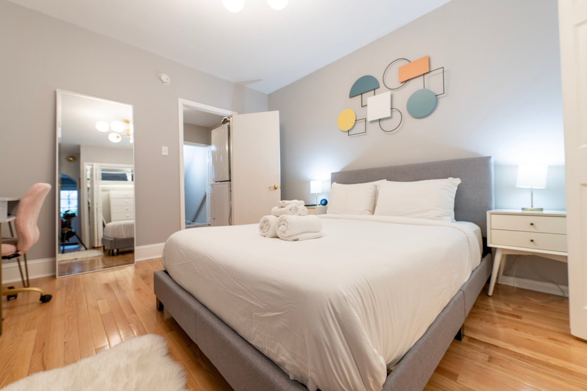 📲 Hogar inteligente: 2 dormitorios/2 baños. Céntrico, con aparcamiento gratuito en la calle y MUCHOS servicios inolvidables. Bar 🍸 clandestino oculto en una estantería Sauna de cedro para🔥 4 personas Espacio de trabajo💼 ejecutivo Cocina 🍳 totalmente equipada Bañera de🛁 hidromasaje. Patio 💡 privado con luces de bistró y parrilla de gas Wifi de alta velocidad de🌐 1 GB Restaurantes, tiendas de comestibles, Starbucks, CVS y Wawa, todo a 3 manzanas. Perfecto para una estancia inolvidable en el corazón de Filadelfia.
