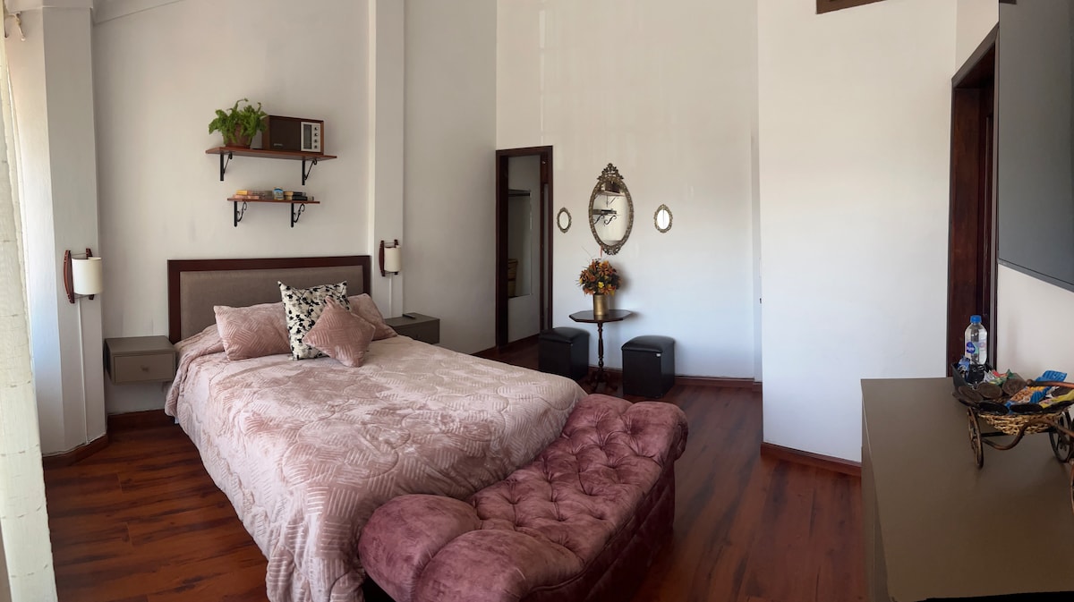 Vive una escapada especial en nuestra suite acogedora en pleno corazón de la ciudad, ideal para parejas que desean compartir momentos únicos con todo a pocos pasos. Su ubicación privilegiada te permite caminar hacia restaurantes, cafeterías y atractivos turísticos sin necesidad de auto. El espacio es sencillo, cómodo y muy limpio, pensado para que descanses, te relajes y disfrutes de una estadía práctica, cálida y con atención cercana que te hará sentir bienvenido desde el primer momento.