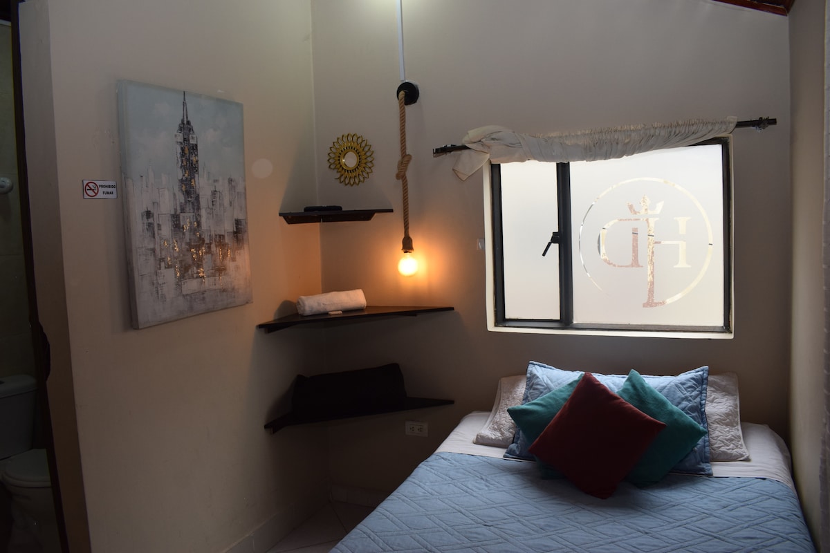Descansa y relájate en este espacio tranquilo y elegante. Nuestra habitación está situada en el centro histórico de nuestra hermosa ciudad de Tunja. A tan solo 4 cuadras de la Plaza de Bolívar y a 1 cuadra del Parque Santander.