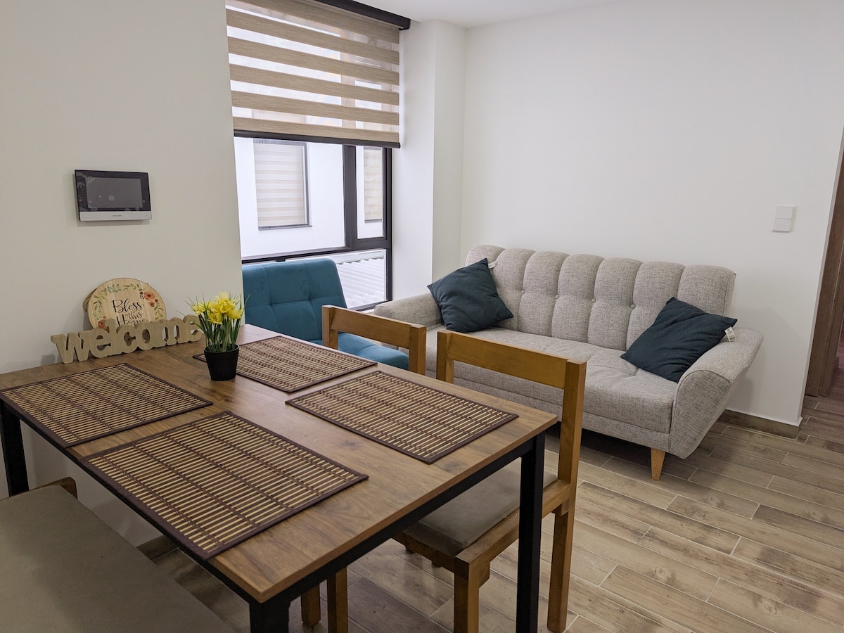 Disfruta de este aparta estudio tranquilo, cómodo y bien equipado, ideal para que tengas una buena estadía. Ubicado a pocas cuadras del centro de la ciudad, en un lugar bastante tranquilo y de fácil acceso desde los centros comerciales y universidades. Cerca de rutas de transporte público y de comercio básico (droguería, panadería, supermercado, restaurante, salón de belleza, etc) Frente al edificio tenemos una amplia zona verde, segura y tranquila. Bienvenidos!!
