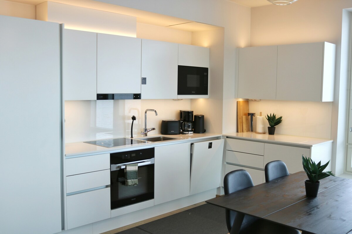 Luxury Boutique Art Deco läpitalon house steps from Central Station. This spacious 100 m² two-bedroom residence sleeps up to 4 guests and combines timeless design with modern comfort for an elevated city stay. ✧100 m² of bright, open living space ✧2 large bedrooms ✧Private sauna for full relaxation ✧Cozy fireplace ✧Rainfall shower for a spa-like experience ✧Large Smart TV with free Netflix ✧Fully equipped modern kitchen ✧Washer & dryer for convenience ✧Prime central location – walk everywhere