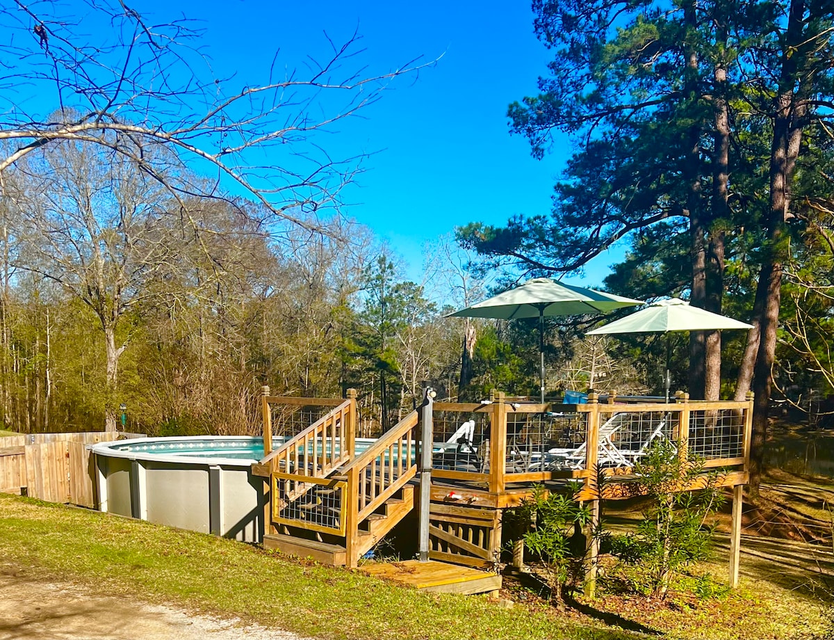 La Ponderosa es relajante y tranquila para cualquier persona. Si necesitas más espacio, tenemos zonas al aire libre para autocaravanas o tiendas de campaña. Este es un gran espacio para reuniones como: comidas de cangrejos de río, reuniones familiares, cumpleaños, una escapada romántica en pareja o una escapada familiar de la vida cotidiana. Ven y disfruta de la naturaleza y mira las estrellas en la Ponderosa. El lago Sam Rayburn está a 35 minutos.El embalse de Steinhagen está a 10 minutos y la reserva nacional Big Thicket National Game está a pocos minutos. Para disparar en la propiedad se necesita aprobación.