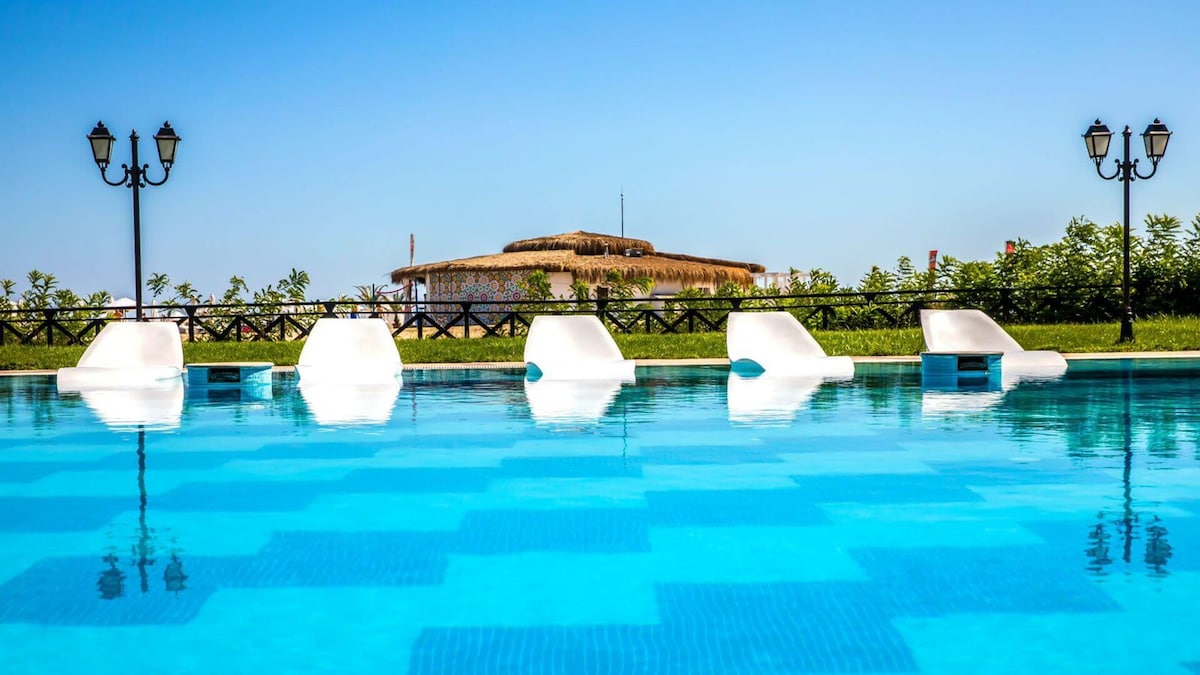El alojamiento único para toda la familia dará recuerdos inolvidables. Está a 50 pasos del mar . Las instalaciones tienen 2 piscinas grandes con elegantes zonas de estar. Vista a la piscina desde el balcón Hay vistas al mar. Restaurantes , parques infantiles y deportivos, salas de fitness ( 10 a la izquierda) . El restaurante Lavender ofrece desayuno por una tarifa adicional ( 25 a la izquierda) . Área de SPA, salón de belleza: ¡todo esto hará que tus vacaciones sean inolvidables !