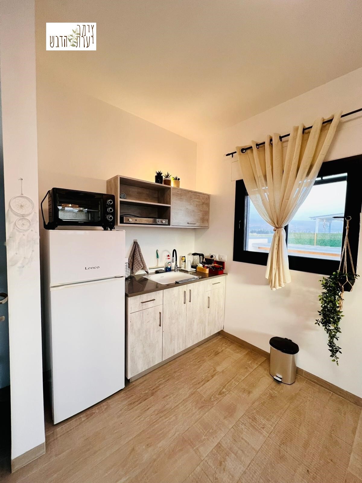 Una nueva unidad de huéspedes con una gran terraza solárium, con vistas a las montañas Golan y Hermon (encima de una casa residencial). A 2 minutos a pie desde el arroyo Corn que corre dentro del Kibbutz, el campo y una piscina de llamada de verano. Un complejo de restaurantes a poca distancia a pie, kayak, senderos para bicicletas y varias atracciones. Kibbutz HaGoshrim es único en su belleza, impresionante vista verde, ¡para cualquiera que busque paz y calma este es el lugar! En la unidad encontrarás: amplia sala de estar, dormitorio, ducha e inodoro, cocina totalmente equipada: horno tostador, estufa eléctrica, nevera, hervidor eléctrico. También tendrás algunas delicias esperándote: una botella de vino, una botella de agua, chocolates y aperitivos.