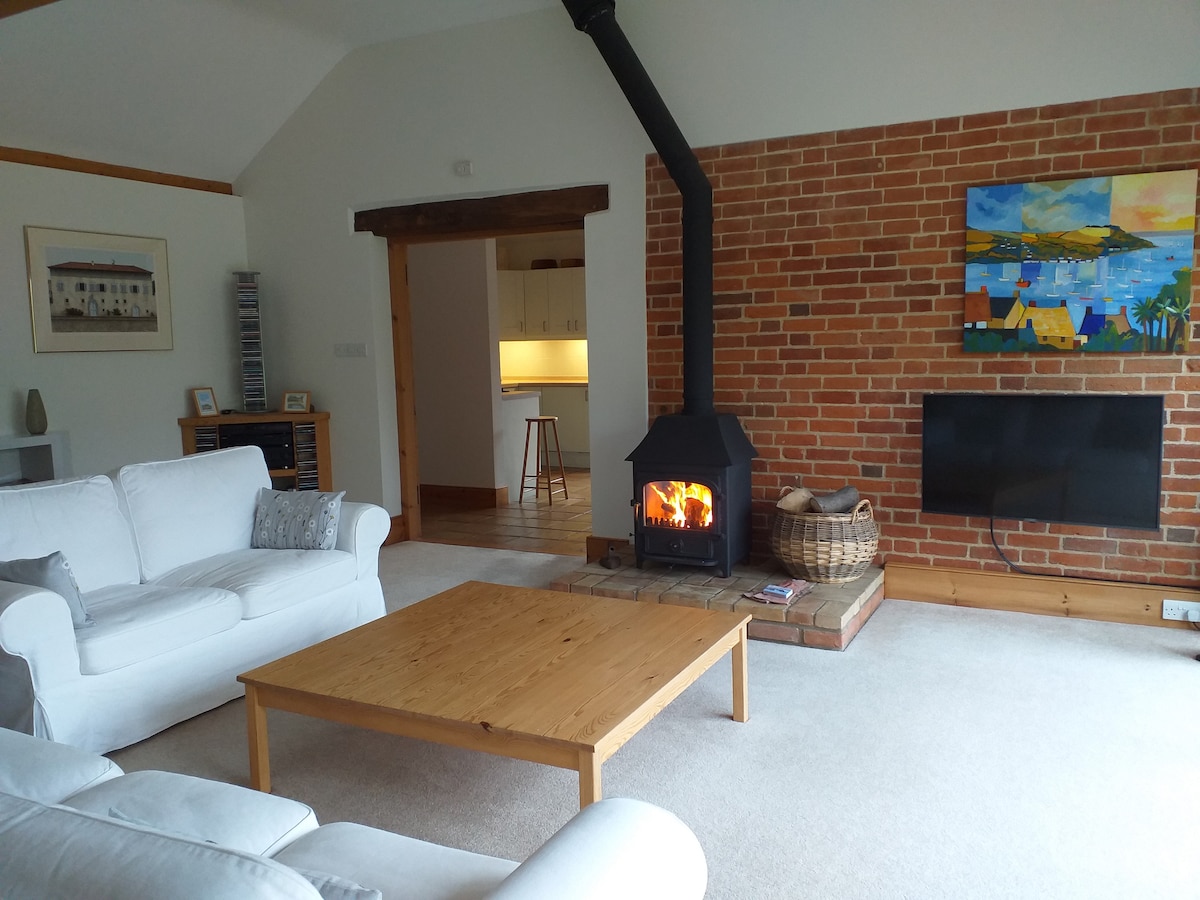 Nuestro anexo autónomo y bien equipado se convierte en cobertizos de ganado y una sala de máquinas de caballos. Es luminoso y espacioso y colinda con el granero enmarcado en madera donde vivimos. Comenzamos el trabajo de conversión en 1995. La propiedad se encuentra en 5,5 acres de jardín, rodeada de tierras de cultivo. Estamos a 5 millas al norte de la histórica ciudad de Framlingham y a 16 millas de la Costa del Patrimonio de Suffolk. Es una escapada pacífica, tranquila, relajante y tranquila. Vigilantes de aves, caminantes, ciclistas, escritores, artistas, amantes de la naturaleza.