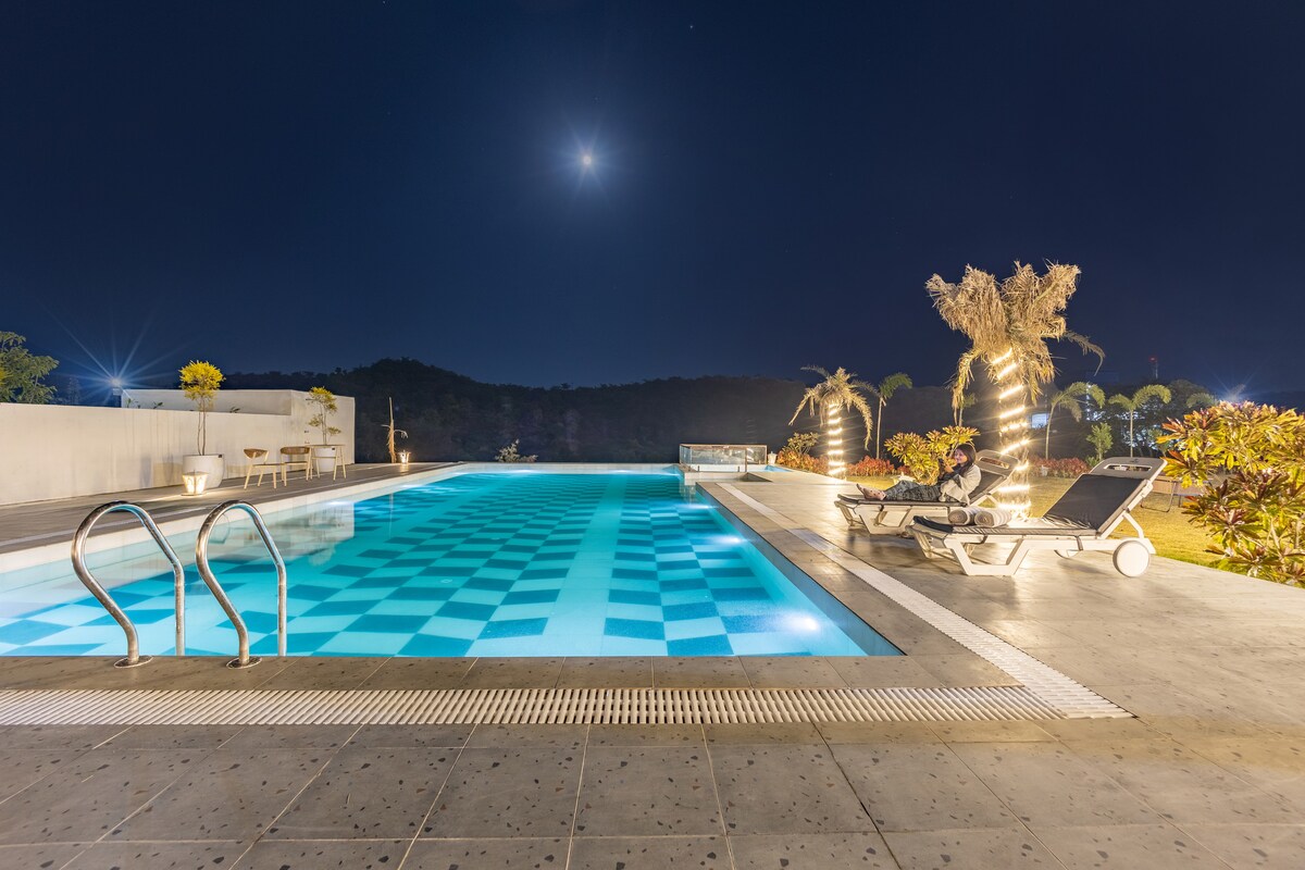 Bienvenido a Jannat, una villa de lujo de 2 dormitorios en Udaipur con piscina privada, vistas a la colina y un entorno tranquilo. Este alojamiento de lujo admite mascotas y es perfecto para parejas, familias o trabajadores a distancia. Disfruta de habitaciones espaciosas, una cocina completa, wifi rápido y total privacidad. Relájate en el jardín o disfruta de las vistas panorámicas a las montañas. ¡Reserva tu estancia en una de las mejores villas con vistas a la colina en Udaipur y experimenta la comodidad, el estilo y la serenidad hoy mismo!