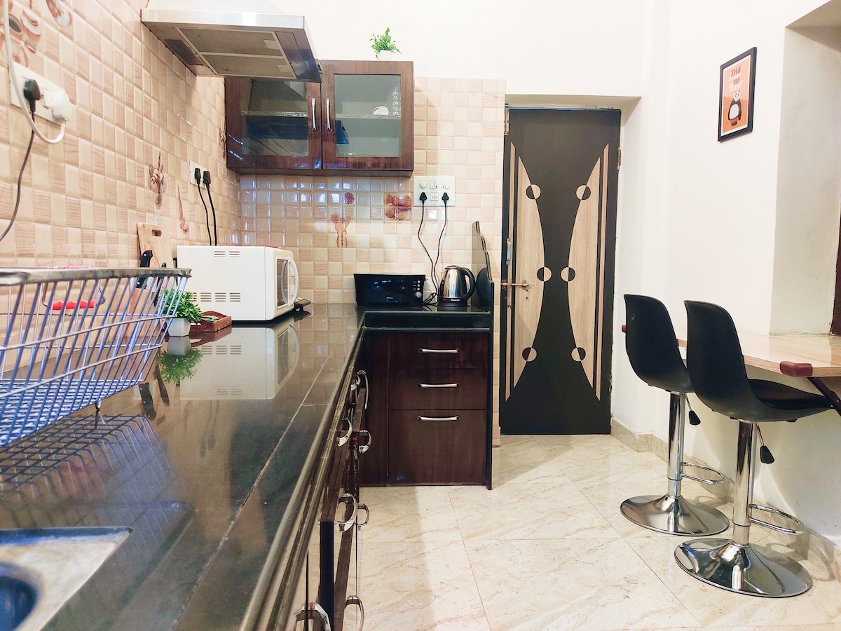 Ideal home for a FAMILY - Luxurious 2-bed, 2-bath apartment in Udaipur’s busy location ideal for families, travel enthusiasts or working professionals. Sleeps 5 with 2 double beds + 1 divan-style sofa bed. Modern décor, 70”smart TV, L-shaped sofa, AC in every room, two balconies, fully equipped kitchen, and workspace. Walking distance to cafes, restaurants, shops, temples, schools. Housekeeping and daily cleaning ( available on prior request) included in the price.