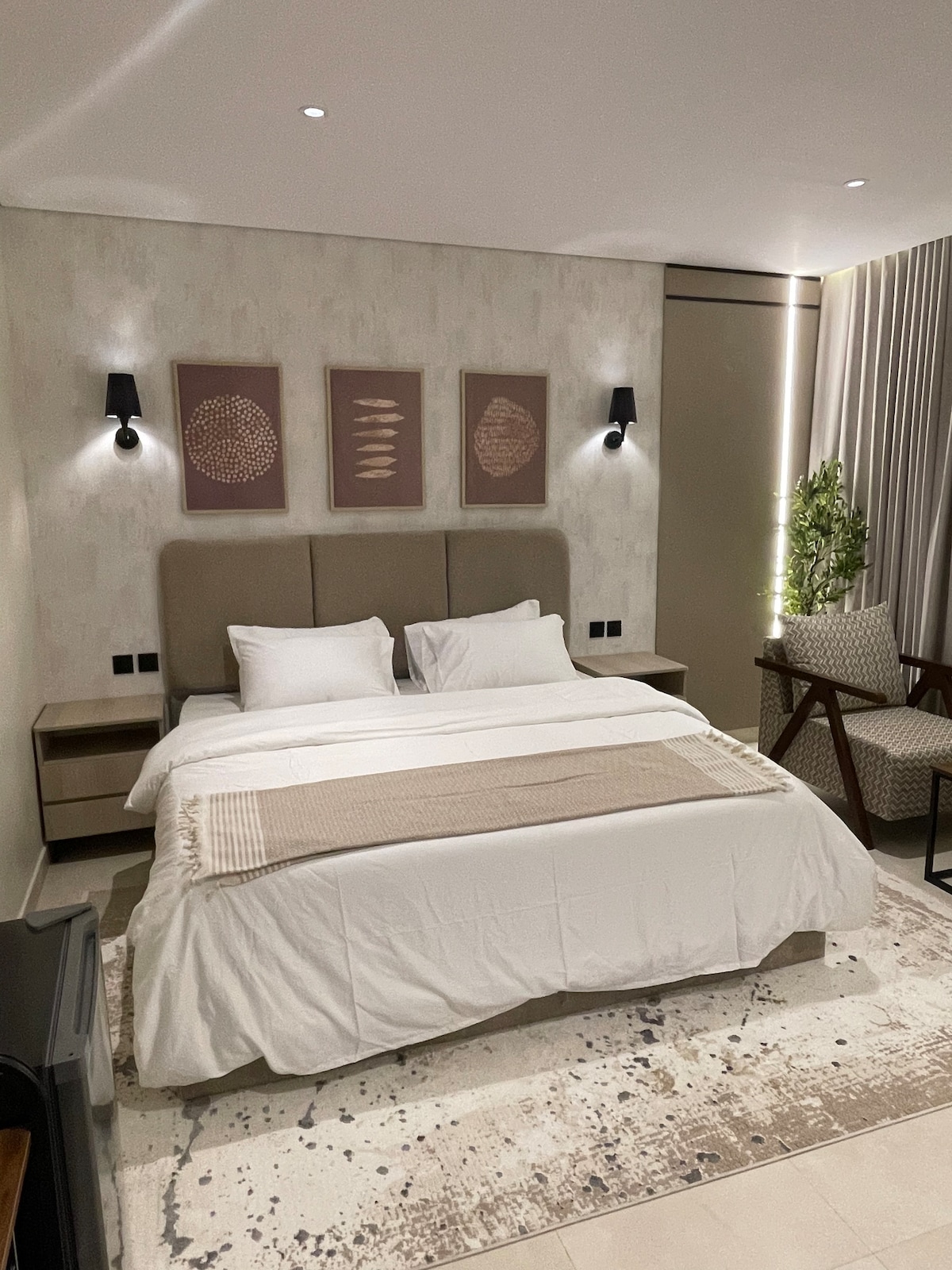 استمتع بتجربة سفر رائعة في هذا المسكن المتميز، يقع هذا المسكن الخاص بالقرب من الحرم النبوي ومسجد قباء بمسافة 5 دقائق فقط بالسيارة، يتوفر بالقرب من المسكن جميع الخدمات الأساسية والمطاعم الشعبية المشهورة في المدينة المنورة. يتميز هذا المسكن بـ : - غرفة نوم واسعة بسرير مزدوج ومريح. - شاشة ذكية 65 بوصة - بار صغير مزود بـ (غلاية كهربائية، مايكرويف، ثلاجة) - دورة مياه مع جميع مستلزماتها - واي فاي عالي السرعة - مصعد