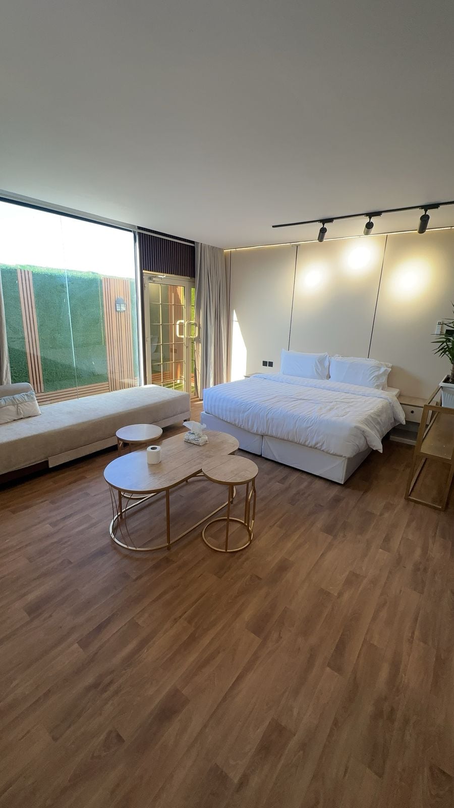 Estudio Master de lujo que contiene: • Cómoda cama principal para garantizar un sueño tranquilo. • Elegante sala de estar con cómodo sofá. • Televisión de alta definición para disfrutar de la visualización. • Zona de café equipada para preparar bebidas calientes. • Cocina equipada. • Baño privado equipado con todas las necesidades de champú, jabón y gel de ducha para una comodidad total. Lugares cercanos: La Mezquita del Profeta a menos de 10 minutos Estación de tren de Al-Haramain a menos de 10 minutos Aeropuerto Príncipe Mohammed Bin Abdulazir Abdulaziz a menos de 15 minutos