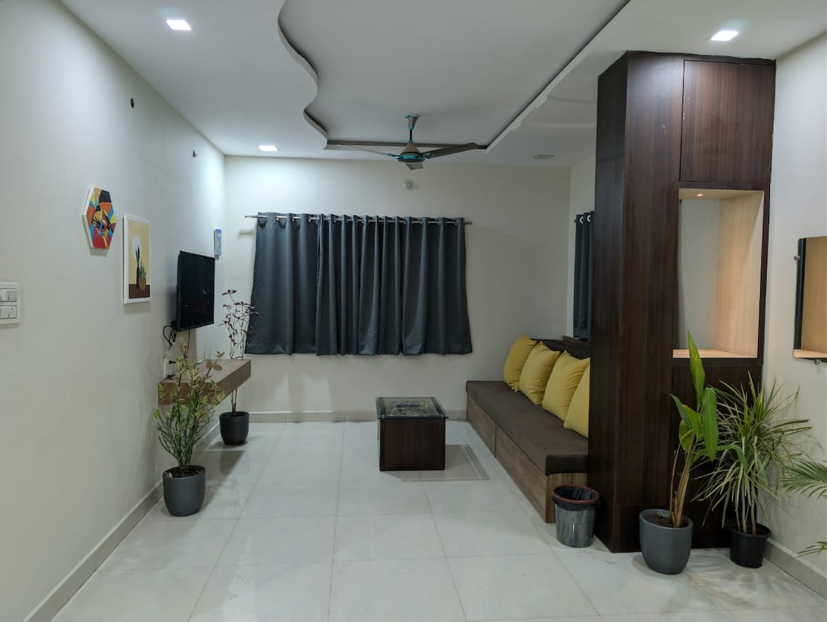 Disfruta de una vida cómoda en el corazón de Ujjain con nuestro nuevo y elegante apartamento 2BHK. Ofrece un refugio moderno y sereno, está idealmente ubicado a solo 12 minutos (3 km) del venerado templo Mahakal y a solo 8 minutos (3,4 km) de la estación de tren de Ujjain. Situada en el primer piso, esta casa totalmente climatizada con dos baños bien equipados ofrece la base perfecta para peregrinos, familias y viajeros que buscan comodidad, comodidad y una experiencia premium.