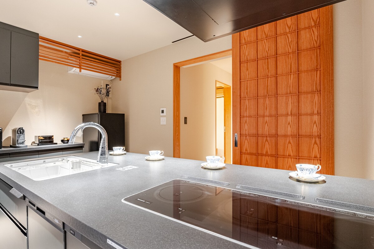 Kyomachiya Private Lodging "Takasegawa Shichijo" es una kyomachiya de 115 años completamente renovada. La kyomachiya, que forma el hermoso paisaje de Kioto, se ha remodelado en un edificio con un alto rendimiento de hermeticidad y aislamiento térmico para que puedas pasar un tiempo cómodo en los veranos húmedos y los inviernos fríos únicos de Kioto mientras conserva la estructura original. Desde la habitación de estilo japonés en el primer piso, se puede ver el jardín tsubo (un jardín que conduce a la sala de té) con una imagen "roji". Además, hemos preparado un sofá en el pasillo para que puedas relajarte y disfrutar de la vista del jardín tsubo. Por la noche, puedes pasar un rato relajante mientras miras el jardín tsubo iluminado. Hay 2 dormitorios en el segundo piso, uno con 2 camas individuales y uno con 1 cama doble. Si hay 5 o más huéspedes, podemos preparar un futón en la habitación de estilo japonés en el primer piso y usarlo como dormitorio, aunque es un poco molesto. La cocina está equipada con utensilios de cocina y platos para cocinar de forma sencilla.