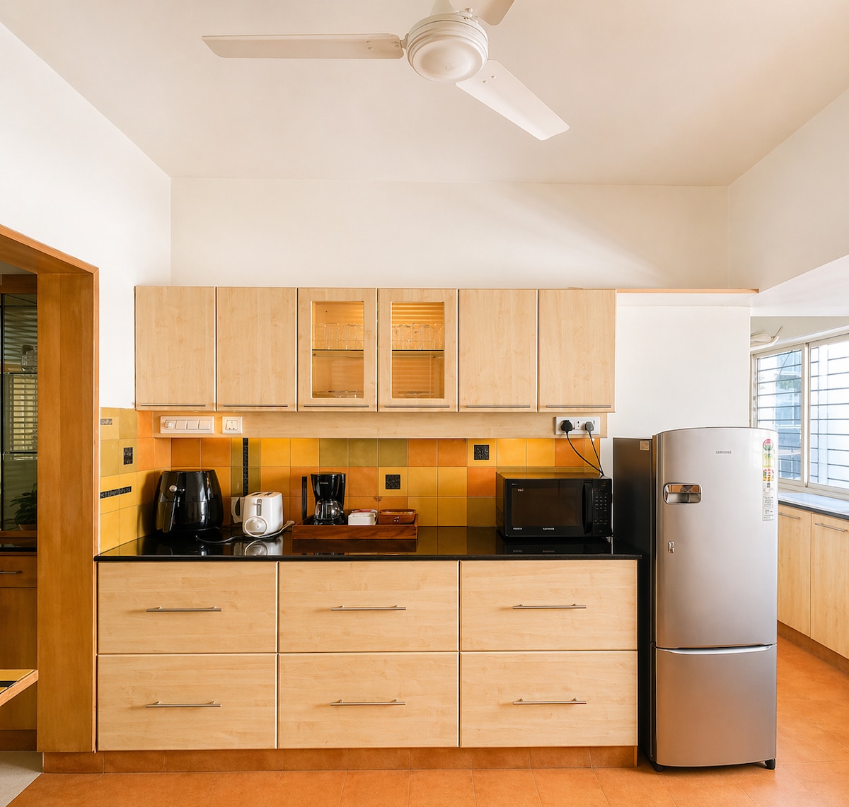 1BHK privado con balcón en Koramangala Disfruta de una vida de primera en un 1BHK privado con balcón en la exclusiva Koramangala. Ideales para parejas, profesionales y viajeros de negocios, nuestras modernas unidades ofrecen wifi de alta velocidad, servicio de limpieza, una cocina totalmente equipada, acceso a un jardín común en la terraza, lavadoras y secadoras. Ubicado cerca de los mejores cafés, restaurantes y oficinas, este alojamiento tranquilo combina comodidad y conveniencia en uno de los barrios más vibrantes de Bangalore.