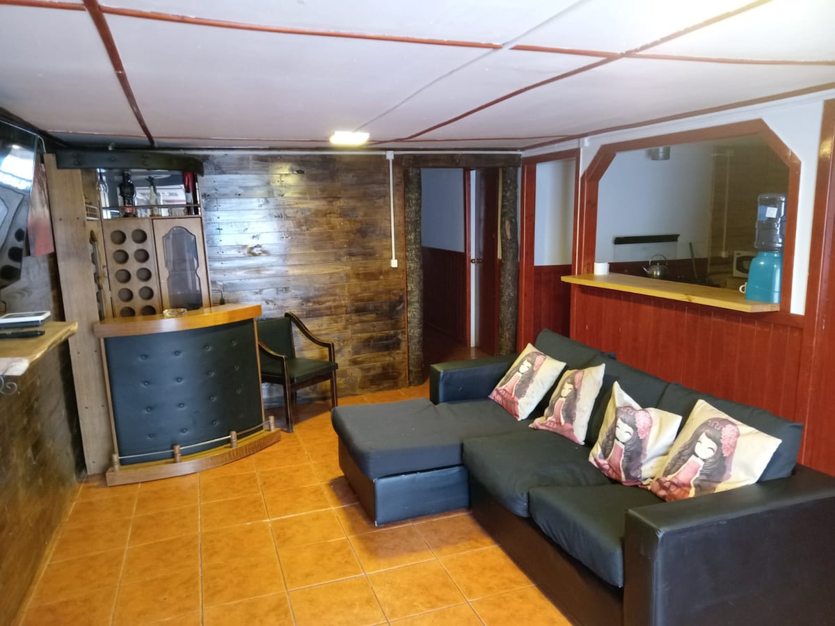 Disfruta de una hermosa y comoda cabaña totalmente equipada, a solo cinco minutos caminando del terminal de buses y quince minutos del centro, locomocion colectiva a la puerta, con entrada independiente y estacionamiento, cuenta con Wifi, un dormitorio matrimonial y cocina americana.