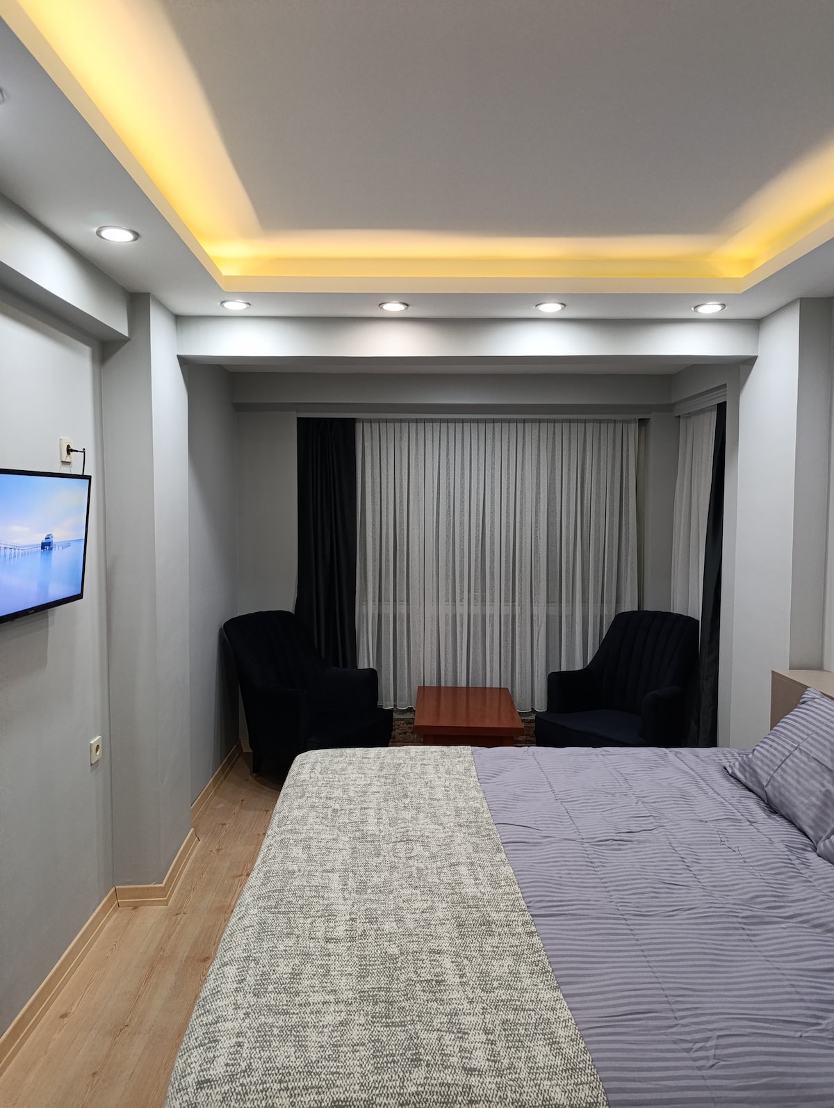¡Disfruta de la comodidad de una residencia nueva y segura! Justo debajo hay un elegante restaurante que puede considerarse de alta cocina y una de las cadenas de café de mayor calidad del país. Un gran parque frente a la residencia, un buen restaurante y 3. Hay una cafetería Nesil. Hay un mercado de cadenas cerca. Hay una piscina y un gimnasio disponibles para que nuestros huéspedes los utilicen dentro del sitio. Hay un montón de aparcamiento gratuito disponible en frente del sitio para sus vehículos. Las instalaciones están protegidas por un servicio de seguridad 24/7.
