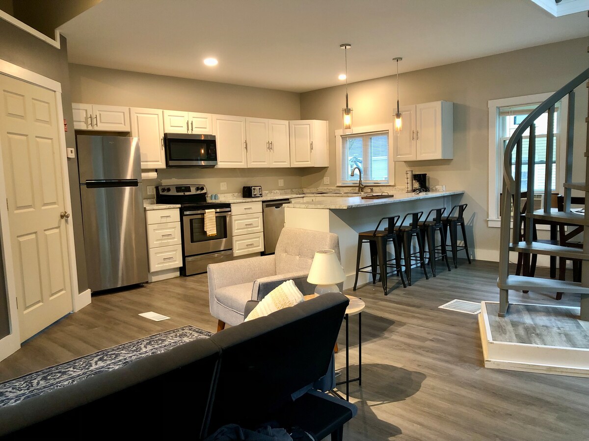 Disfruta de Hallowell y Central Maine mientras te hospedas en nuestro estudio. A poca distancia a pie del centro de Hallowell, a tiendas, restaurantes y pubs. Da un paseo por el sendero ferroviario de Kennebec. A 15 minutos en coche para visitar Maine Cabin Masters. A una hora en coche de Boothbay Harbor, Rockland o Belfast. El estudio está situado encima del garaje de los propietarios: entrada independiente y aparcamiento fuera de la calle. Incluye: ropa de cama, toallas, TV, wifi, Keurig individual, microondas, tostadora, nevera de dormitorio tamaño universitario, nevera pequeña.