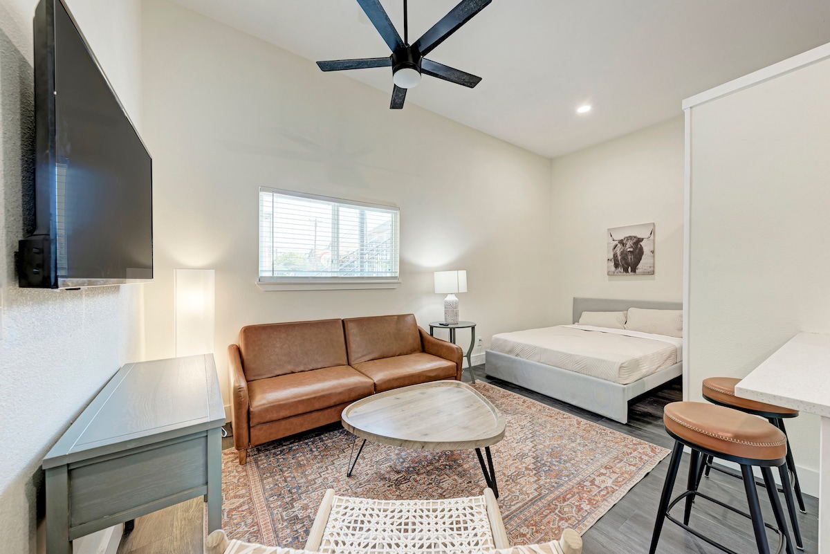 This is a trendy, comfortable and convenient guesthouse for spending a fun-filled getaway in East Austin. Our casita is walkable to many of Austin’s hottest spots, including the Moody Center: Austin’s largest music venue. Built in 2020, our guesthouse features a lofted queen-sized bed, a couch with a pull-out twin mattress, an elegant walk-in shower, smart TV, and small appliances including fridge-freezer, microwave, and Nespresso coffee maker. Relax in style as you explore our fun city!