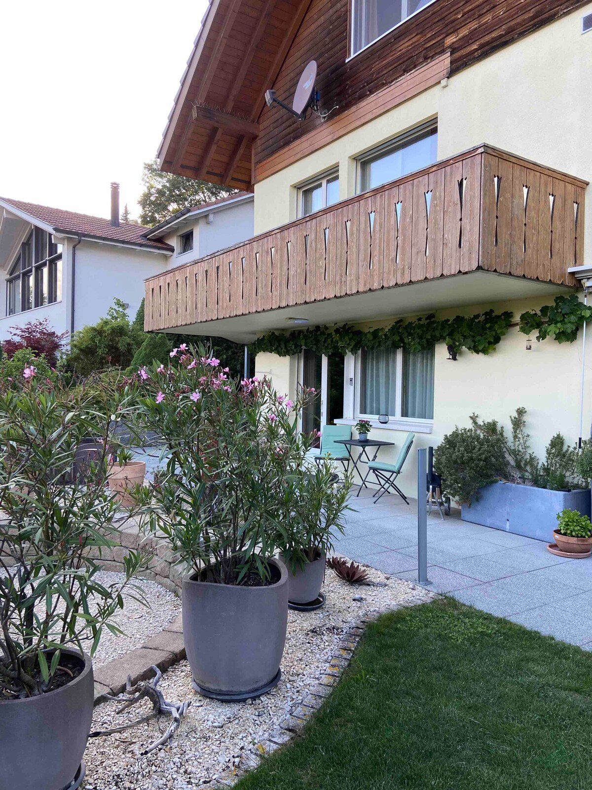 Siéntate y relájate en este alojamiento tranquilo y elegante. Heimberg es un punto de partida ideal para hacer excursiones al Oberland bernés. Interlaken, Grindelwald, Top of Europe, Gstaad, Emmental, Thun y Berna. A 10 minutos a pie de la estación de tren o a 3 minutos por la autopista. El estudio RoseGarden está orientado al oeste. para que puedas disfrutar del sol durante más tiempo por la tarde. El jardín invita a quedarse. Un pequeño estanque con cascada calma los sentidos.