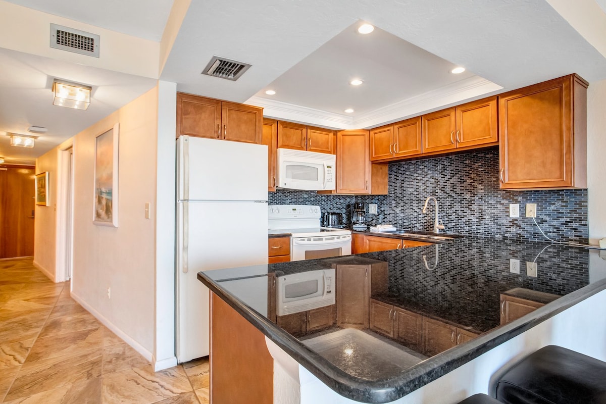 Las vistas más impresionantes desde este nuevo condominio directamente en Treasure Island Beach. Este encantador alojamiento se encuentra en el cuarto, quinto o sexto piso y ofrece vistas panorámicas del mar. Esta unidad tiene 2 dormitorios y 2 baños completos. La acogedora sala de estar de concepto abierto tiene una de las mejores vistas del océano, especialmente cuando se abren las puertas correderas retráctiles. La mesa del comedor en tu balcón privado proporciona un comedor perfecto, con el océano que proporciona un hermoso telón de fondo.