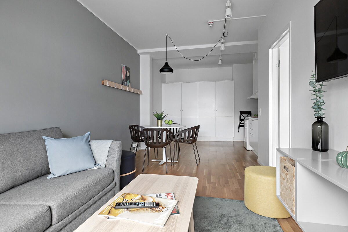 ¡Bienvenido a este acogedor apartamento estudio! Prepara tus comidas en la cocina pequeña, que está equipada con nevera/congelador, estufa, microondas, hervidor de agua y todos los utensilios de cocina necesarios, así como un comedor para dos personas. El estudio tiene dos camas individuales y un televisor de pantalla plana. Tu baño privado incluye ducha, inodoro y lavabo. La habitación también incluye wifi, ropa de cama, toallas y una limpieza final al final de tu estancia. Los departamentos de la misma categoría de habitaciones pueden diferir en cuanto a su apariencia.