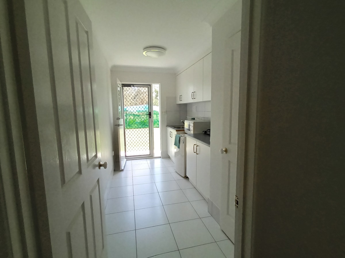 Welcome to our lovely, fully self-contained studio apartment — your own tropical sanctuary. Fresh and clean, the studio has everything you need for a comfortable and relaxing stay. The studio is located in the backyard of our home, converted to host guests. You’ll enjoy a private entrance and your own peaceful space, separate from the main house. Step outside to a tranquil deck, perfect for enjoying a cuppa or an evening glass of wine. 🚭 Please note: This is a non-smoking property.