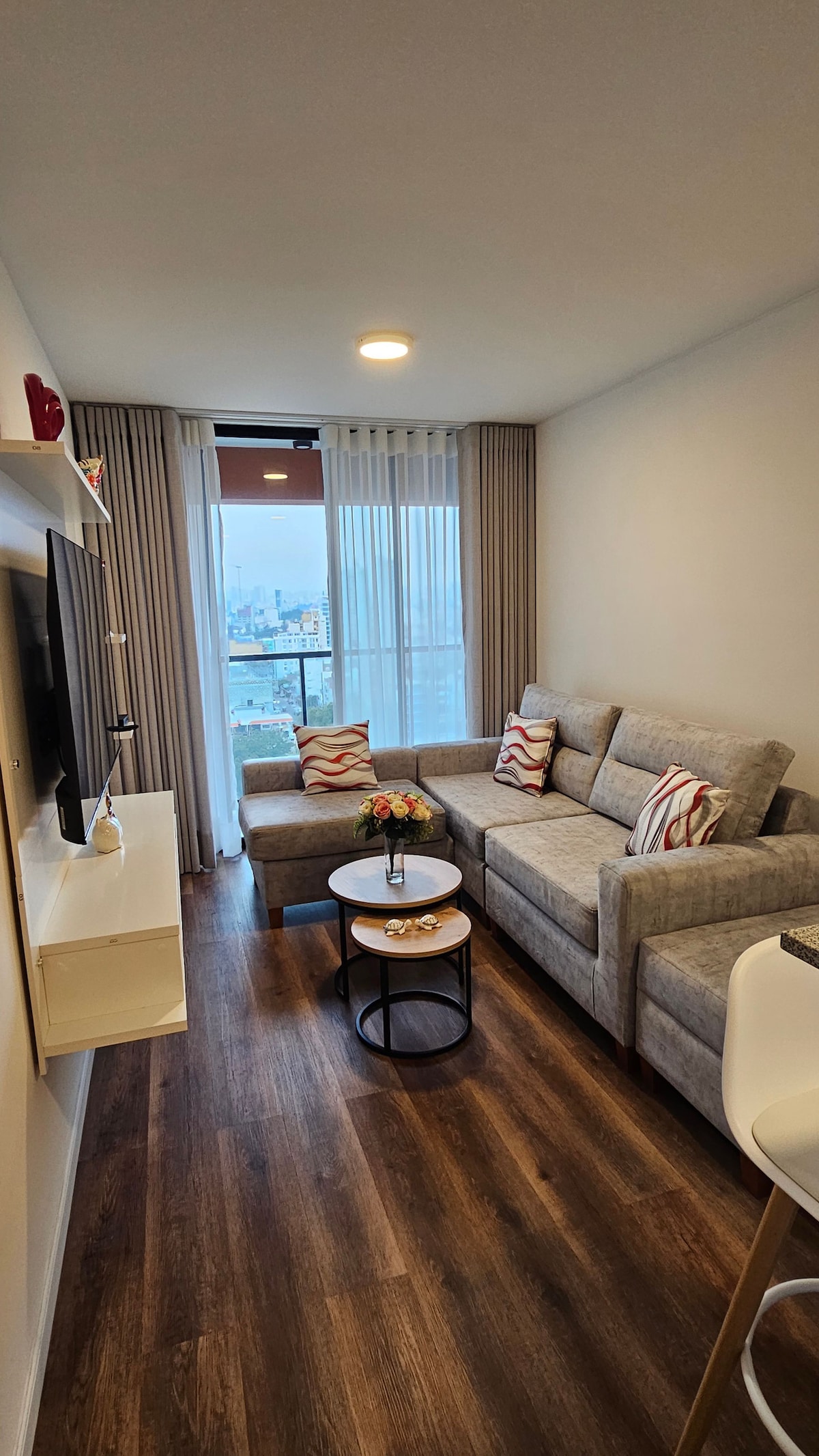 Departamento moderno full amoblado, ideal para largas estancias. Cuenta con Wi-Fi de alta velocidad, Smart TV 65” con Netflix y Disney+, cocina totalmente equipada con cafetera espresso, filtro de agua, lavaseca, cama queen y balcón. Edificio con piscina, gym y coworking. Autocheck-in 24/7, smartkey, estacionamiento gratuito y seguridad 24h. Ubicación estratégica en San Miguel, cerca de universidades, centros comerciales y a menos de 20 min del aeropuerto.