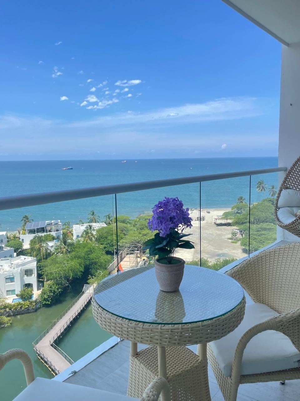 🌴 ¡Vive el lujo de despertar EN LA ARENA! Bienvenido a tu refugio en primera línea de playa en Santa Marta, donde el mar es tu vecino y cada amanecer parece sacado de una postal. 🏝️ Desde el balcón sentirás la brisa caribeña, escucharás el sonido del mar y disfrutarás una vista totalmente despejada que muy pocos alojamientos pueden ofrecer. Baja del ascensor y ya estás en la playa. Sin calles. Sin ruido. Sin nada que interrumpa tu descanso.