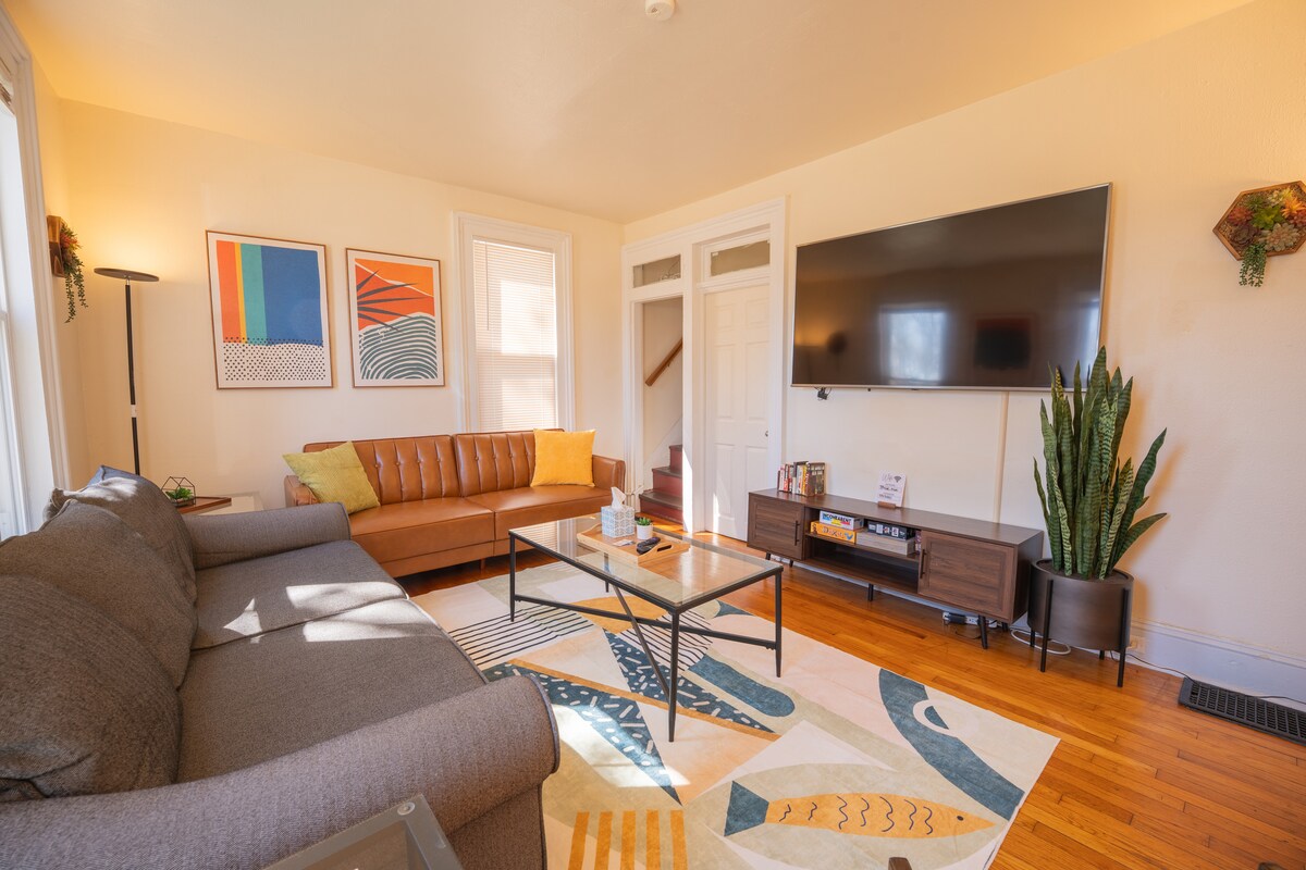 Escápate a un encantador refugio de Urbana, a solo 5 minutos a pie de UIUC, a 2 minutos del Hospital Carle y a 5 minutos del centro de la ciudad. Ubicado en un barrio tranquilo pero a pocos pasos de cafeterías, restaurantes, estudios de yoga, parques, tiendas de comestibles y la parada de autobús. Perfecto para el trabajo, el bienestar o una escapada acogedora. Diseñado para noches de cine (enorme televisor de 85pulgadas), fechas de cocina (cocina de diseño) y sueño reparador, esta estancia moderna ofrece comodidad, comodidad y un toque de magia, todo a pocos pasos de todo lo que necesitas.