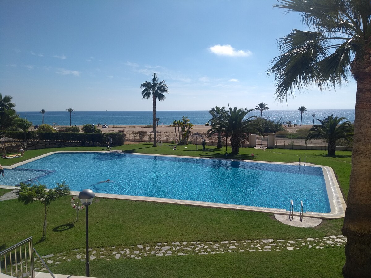 Observa las olas desde tu propio balcón privado mientras bebes una sangría y disfrutas de una auténtica paella valenciana. Si esta es tu idea de paz y relajación, ¡sé nuestro huésped! Te invitamos a disfrutar del sol y relajarte en nuestro encantador apartamento de dos dormitorios frente a la playa. ¡Impresionantes vistas al mar, al jardín de palmeras y a la playa de guijarros desde el salón y el balcón del dormitorio principal! Pistas de tenis y piscina disponibles todo el año. No hay ninguna calle entre el apartamento y la playa.
