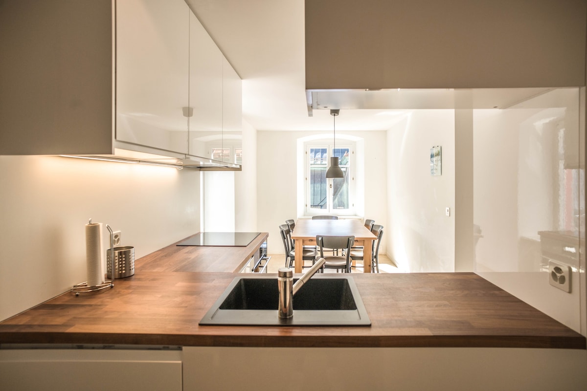 ¡Ático recién renovado de 90 m2 con 2 camas tamaño king y espectaculares vistas alpinas en todas las direcciones convenientemente ubicado en el centro de Suiza! lujoso baño con cabezal de ducha de efecto lluvia y gran espejo LED. wIFI rápido de 300 Mbps y nuevo televisor inteligente de 55 pulgadas. Cocina nueva bien equipada. Café Lavazza gratuito.