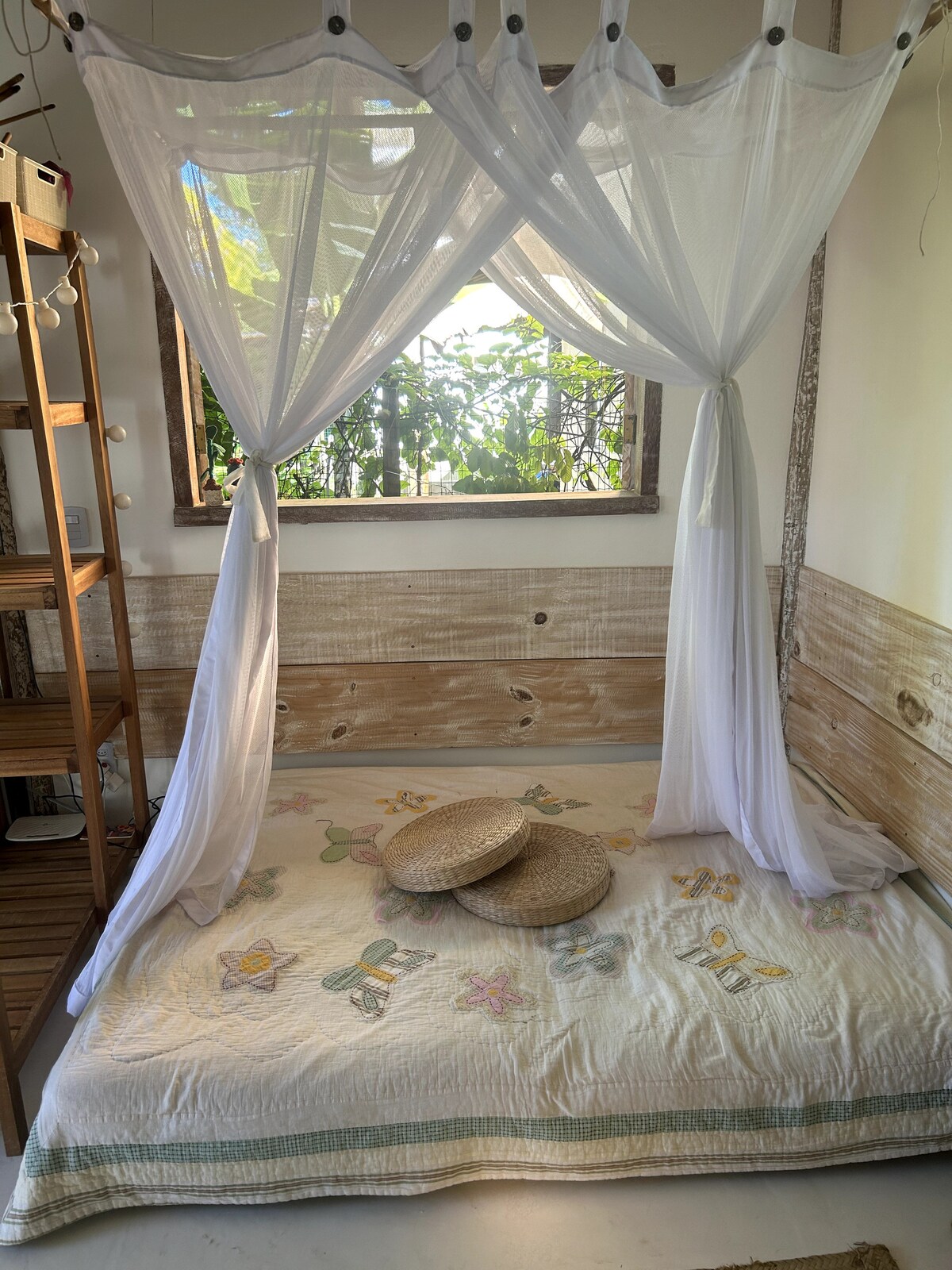 Deléitate con esta encantadora suite de 18 m², un refugio de tranquilidad y bienestar en medio de la naturaleza. Tiene una cama tamaño queen con mosquitera, aire acondicionado, iluminación natural y un balcón con hamaca. Decoración rústica y hecha a mano, creada por el propietario, y espacio de trabajo con buena conexión a internet. La cocina al aire libre está equipada, incluida la barbacoa. Sostenible, con calefacción solar y separación de residuos, así como una ducha externa para una mayor comodidad después de la playa.