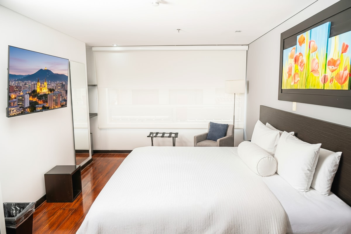 Habitación en Hotel Boutique, ubicado en el barrio de Palermo en la localidad de Teusaquillo, en un sector residencial, a minutos a pie de Clínica Palermo, centro de la ciudad , al estadio el Campin, el Movistar Arena, el Aeropuerto. La habitación cuenta con baño privado , escritorio, tv 32 pulgadas smart y cerraduras inteligentes. Seguridad nocturna.