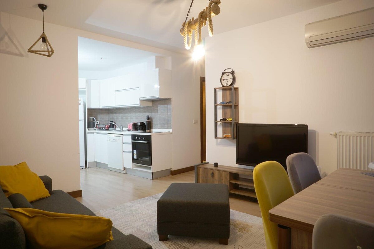 Nuestro apartamento está en el primer piso en el centro de Kadıköy. Está muy cerca del autobús, del ferry, del metro y de los vehículos del aeropuerto, HAVAŞ y HAVAİST. No hay posibilidad de que tenga que esperar o tenga problemas con la llave. Nuestro personal está siempre cerca de usted las 24 horas del día, los 7 días de la semana. Podemos intervenir de inmediato en muchas de sus solicitudes durante su estancia. Nuestro apartamento es de 1+1. 3 personas pueden alojarse muy cómodamente. Tenemos televisores equipados con Netflix y YouTube tanto en el salón como en el dormitorio. Puede disfrutar de una ducha en nuestro amplio baño.