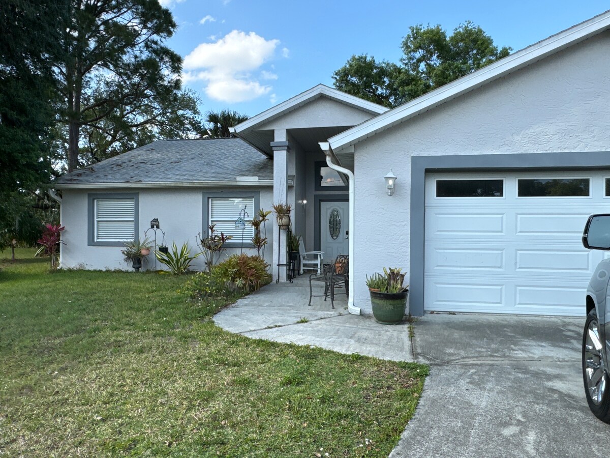 Relájate en esta hermosa casa de tres dormitorios y dos baños al final de una calle sin salida. Los dormitorios tienen dos camas tamaño queen y una cama tamaño king. Todos los dormitorios tienen TV y la sala de estar tiene una TV grande. A 15 minutos de la playa. A 50 minutos de Disney y de las atracciones. Wifi de alta velocidad Spectrum gratuito. Ideal para niños con un gran patio trasero. Todos los servicios públicos disponibles como esperas de una casa unifamiliar. Aparcamiento disponible para 2 a 3 coches fuera del garaje. El garaje no está disponible para los huéspedes.