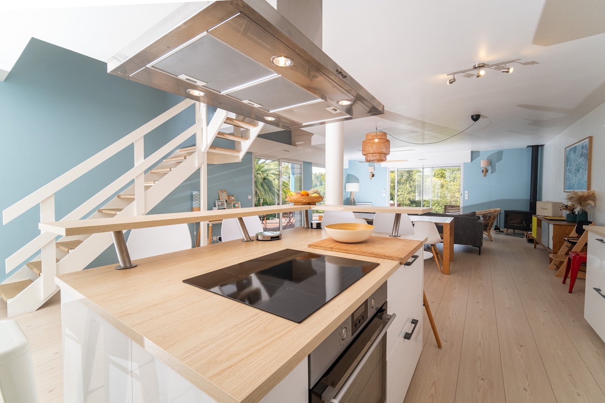 Encantadora casa de 1924 reformada por un arquitecto, decoración contemporánea, jardín paisajístico, piscina climatizada (sales) en temporada y en función del clima. - Planta baja: terraza/salón, cocina en el comedor, salón. Habitación con 1 cama de 160 x 200 cm con cuarto de baño abierto y aseo separado. - R+1: salón, dormitorio n.° 2, claraboya, 1 cama de 160x200 cm. - Habitación n.° 3, 1 cama de 160 x 200 cm. -1 cuarto de baño con inodoro y lavandería. - Terraza con mesa de comedor, salón y sombrilla. Ducha exterior con agua caliente y plancha de gas