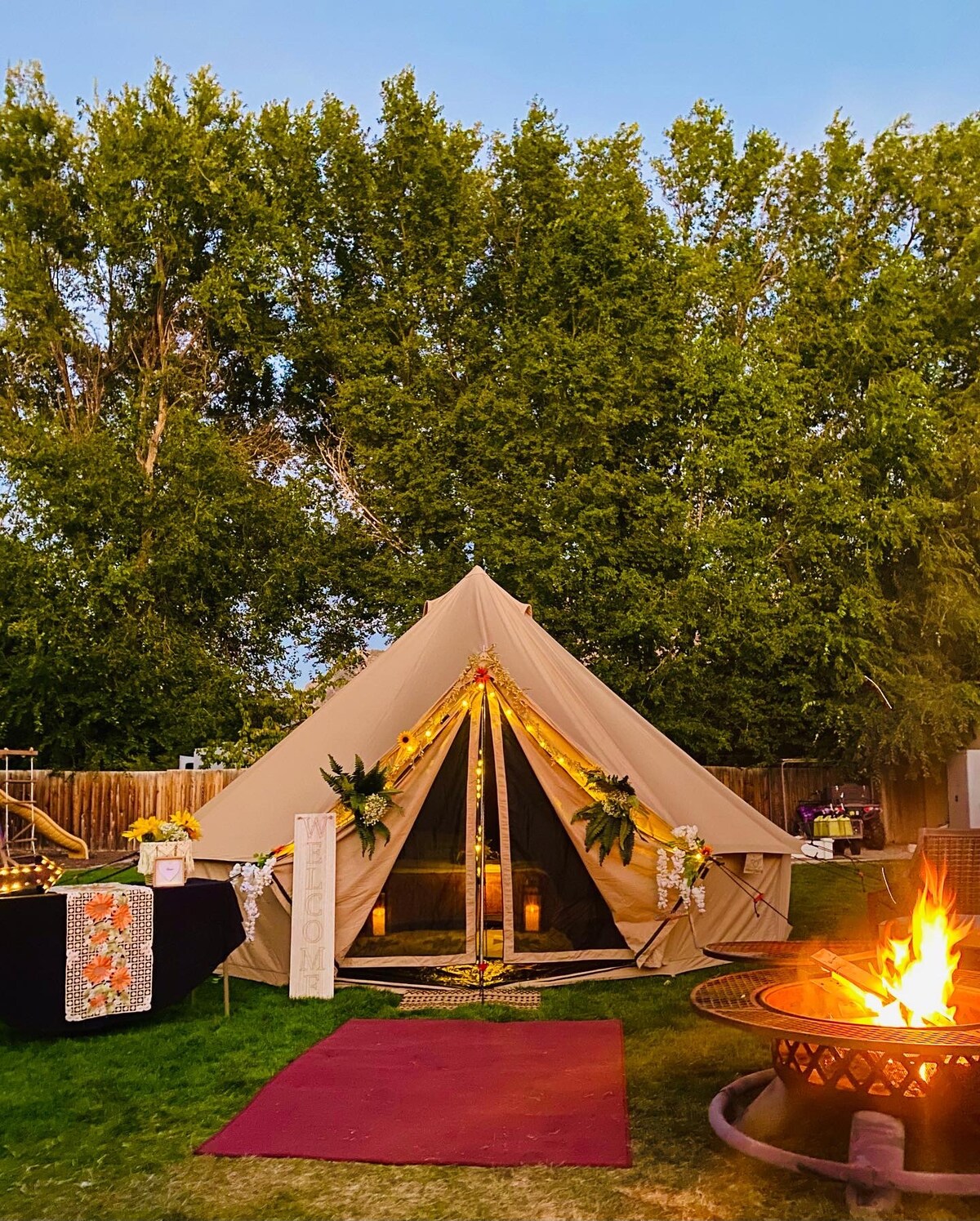 The Glamping tents provide an incredibly unique experience for the more adventurous travelers. You’ll have your very own intimate cozy tent that will feel like a home away from home. Your tent is equipped with a queen bed, twin bed, firepit and chairs, the tents do not have electricity. A centrally located bath house with 4 private units is used by all guests on the property. **THIS LOCATION IS 45 MINUTES FROM DOWNTOWN MOAB/ARCHES NP**