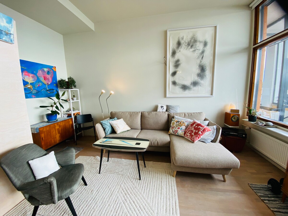 Spacious stylish loft studio has all you need for a cosy living in center of Helsinki. The penthouse flat is located on a quiet street with small restaurants and shops, walking distance to the main attractions. My flat is ideal for couples or 3 adults, but also for small family. Possible to add one extra person on extra mattress. Upea avara loft studio lähellä Helsingin keskustaa, ravintoloita, kahviloita, kävelymatka nähtävyyksiin ja Olympiastadionille, juna-asemalta kävelet 15 minuuttia.