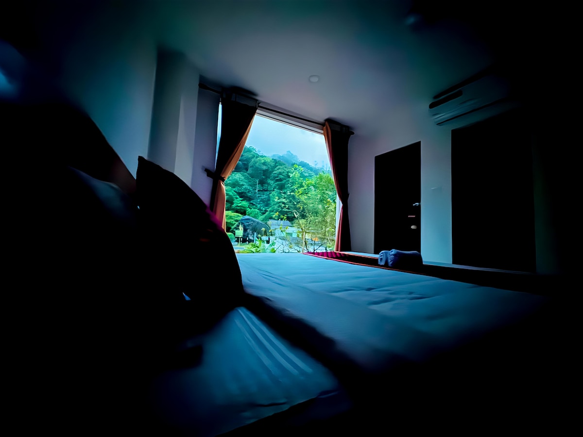 Relájate en esta encantadora villa de piedra de 2 dormitorios enclavada en medio de los brumosos jardines de té de Vagamon. Perfecto para parejas, familias o amantes de la naturaleza, este refugio privado en la ladera ofrece vistas panorámicas al valle, una amplia zona de estar y una serenidad total. Disfruta de la brisa fresca y la exuberante vegetación, todo desde tu puerta. Vistas ✔ panorámicas a la montaña Entrada ✔ privada y zona de descanso ✔ Rodeado de plantaciones de té ✔ Ideal para escapadas a la naturaleza y desintoxicación digital Disfruta de una estancia rejuvenecedora en el regazo de la naturaleza de Vagamon.